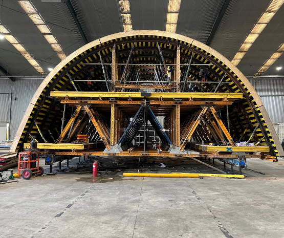 In-situ tunnel lining, invert base construction, and Arch lining. Suitable for train, roadway, and utility tunnels.